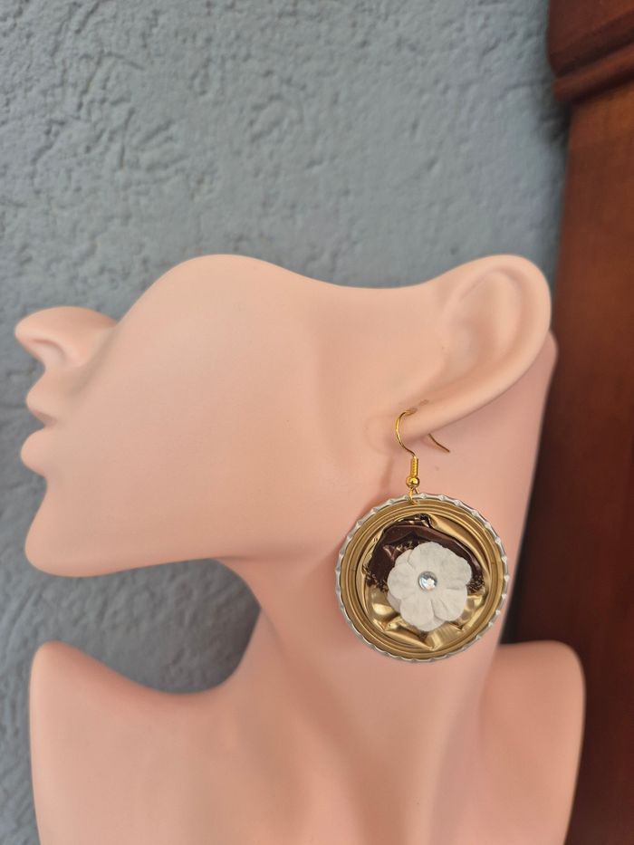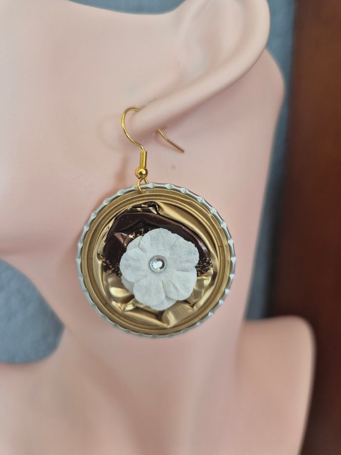 Boucles d’oreilles capsules nespresso marron et doré - photo numéro 1