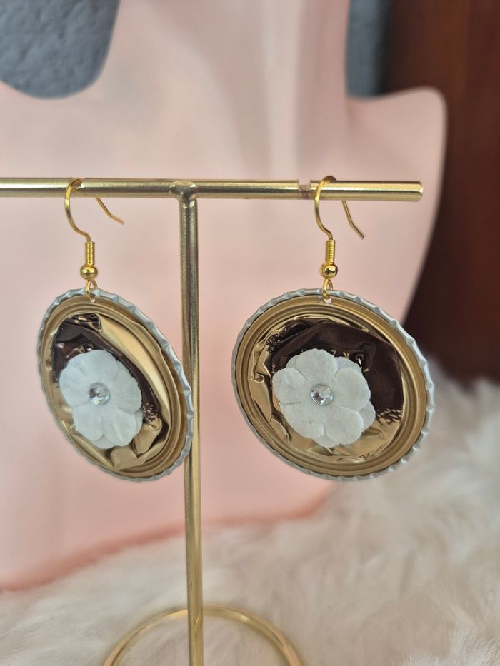 Boucles d’oreilles capsules nespresso marron et doré - photo numéro 3