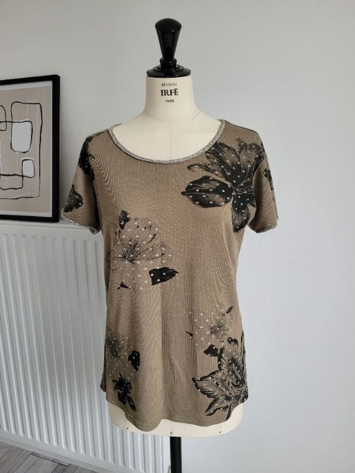 Dressing Pauline Tee shirt kaki à fleurs, excellent état, peu porté Longueur dans le dos : 67m Largeur épaule à épaule : environ 43cm #paulineg61s
