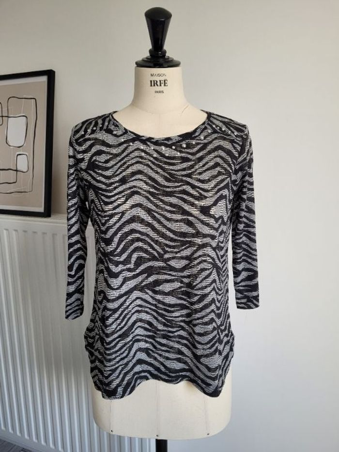 Dressing Pauline Haut manches 3/4 , taille XS/S Noir et gris Très bon état, juste quelques petites bouloches aux manches Longueur dans le dos : 61cm Largeur épaule à épaule : environ 35cm Longueur de manche : 39cm #paulineg61xs #paulineg61s