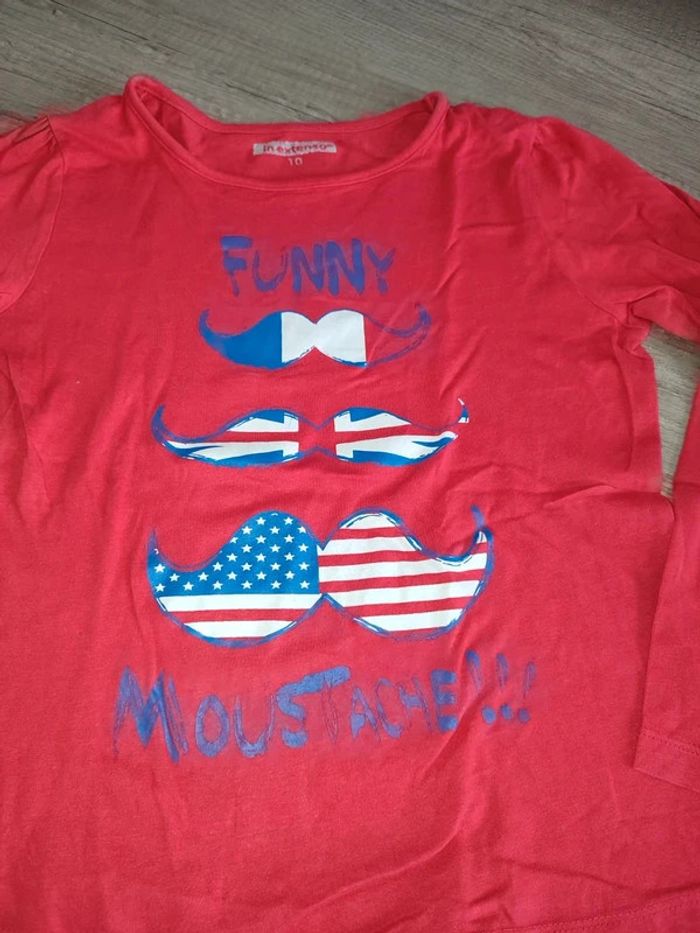 T shirt in extenso 10 ans rouge  funny moustache - photo numéro 2