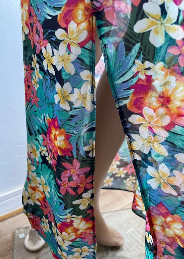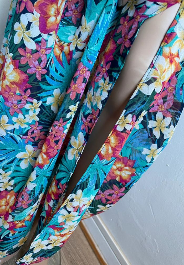 Superbe robe longue bustier de la marque Clockhouse, taille 38. En très bon état ! Son imprimé vibrant de fleurs exotiques et de feuillages colorés sur fond bleu vous transportera instantanément sous les tropiques 🌴. Matière fluide et légère, parfaite pour l'été et les vacances. Taille élastiquée pour un excellent confort et une jolie silhouette. Fentes latérales discrètes pour plus d'aisance. Idéale pour la plage, les soirées d'été ou simplement pour un look ensoleillé ! 🏖️ #robe #été #tropical #bustier #longue #fleurie #taille38 #clockhouse #vacances #plage #modefemme