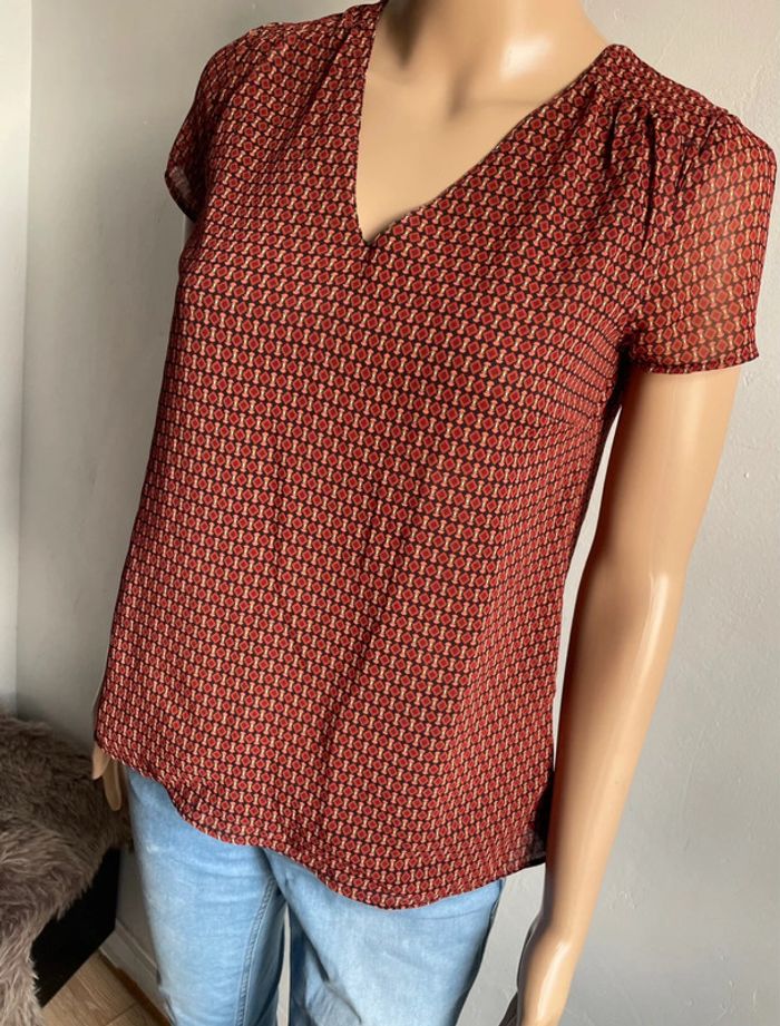 Superbe blouse de la marque Teddy Smith Women, taille 0 (correspond à un XS/S). Parfaite pour la saison estivale avec son tissu léger et son motif géométrique tendance ! ✨ Caractéristiques : * Marque : Teddy Smith Women * Taille : 0 (correspond à un XS/S) * Matière : 100% Polyester (voir étiquette pour les instructions d'entretien) * Couleur : Motifs géométriques dans les tons de brique/rouille et noir * Détails : Col en V, manches courtes, légère fente dans le dos pour le style (voir photo) * État : Excellent état Cette blouse polyvalente peut être portée aussi bien de manière décontractée avec un jean qu'avec un pantalon plus habillé pour un look chic. N'hésitez pas si vous avez des questions ou si vous souhaitez plus de photos ! 😊 #teddysmith #blouse #femme #mode #vinted #été #motifgéométrique #léger #top #tailleXS #tailleS