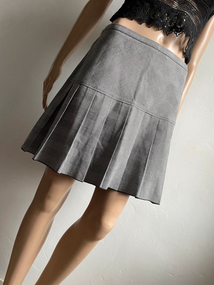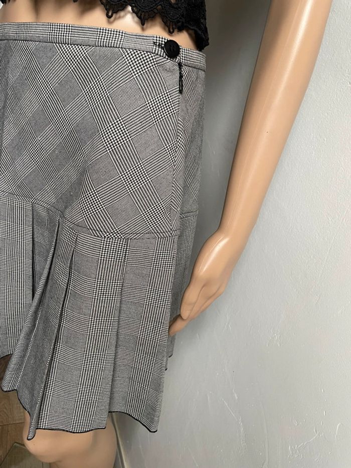 Très jolie jupe Naf Naf en excellent état. Motif Prince de Galles gris et blanc avec une bande noire verticale sur le côté. La partie basse est plissée. Idéale pour un look chic et décontracté. Détails: * Marque: Naf Naf * Taille: S * Couleur: Gris et blanc (motif Prince de Galles) avec bande noire * Style: Mini-jupe plissée * État: Excellent état N'hésitez pas si vous avez des questions ou souhaitez plus de photos !