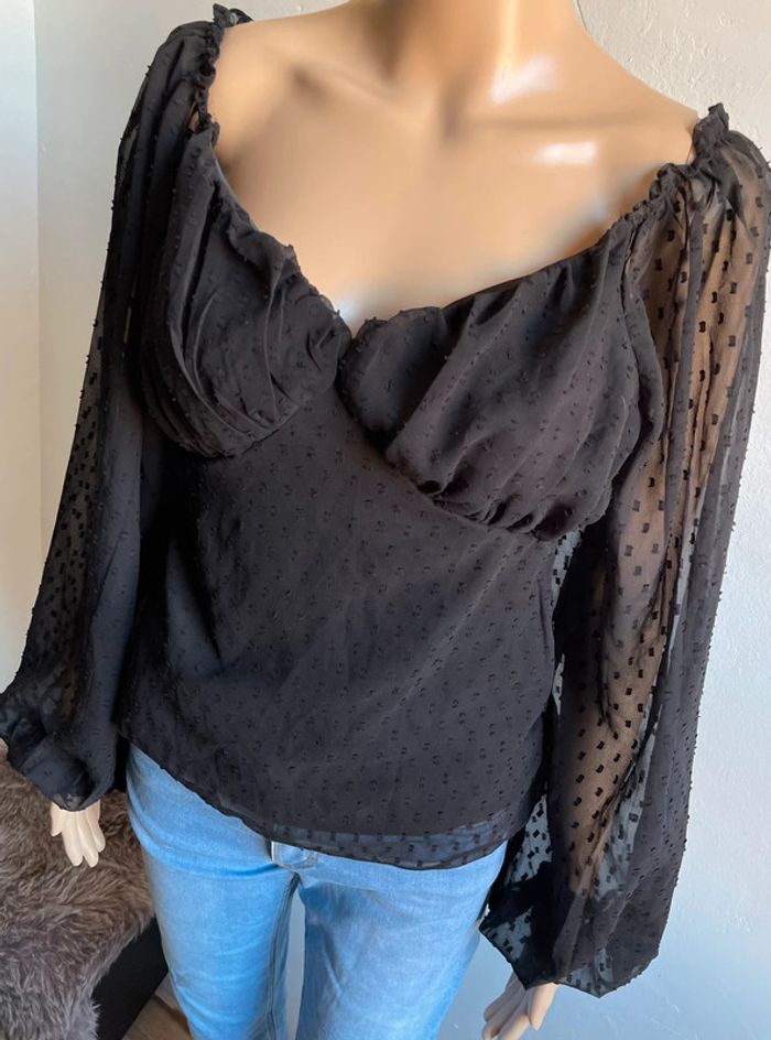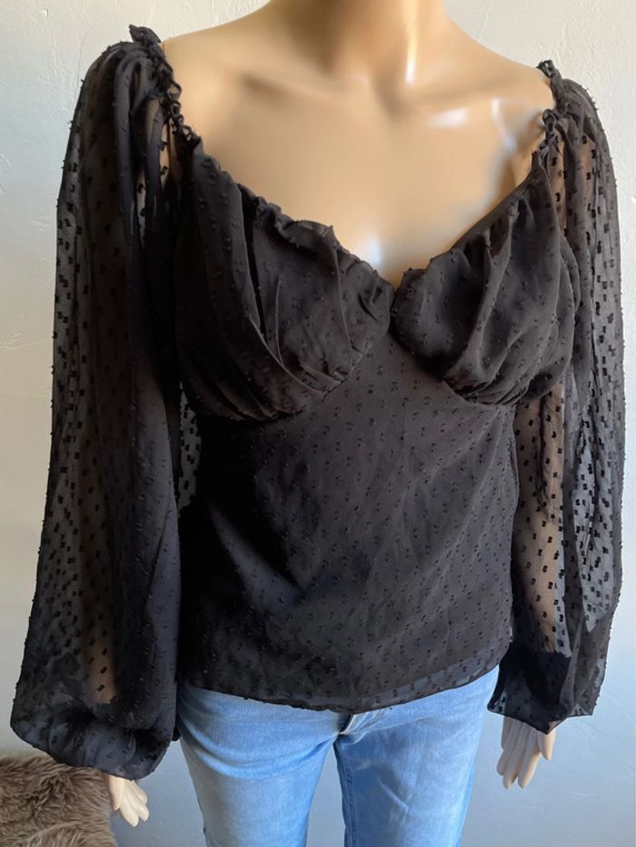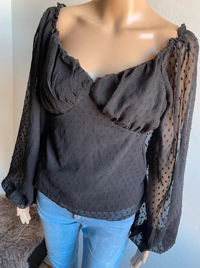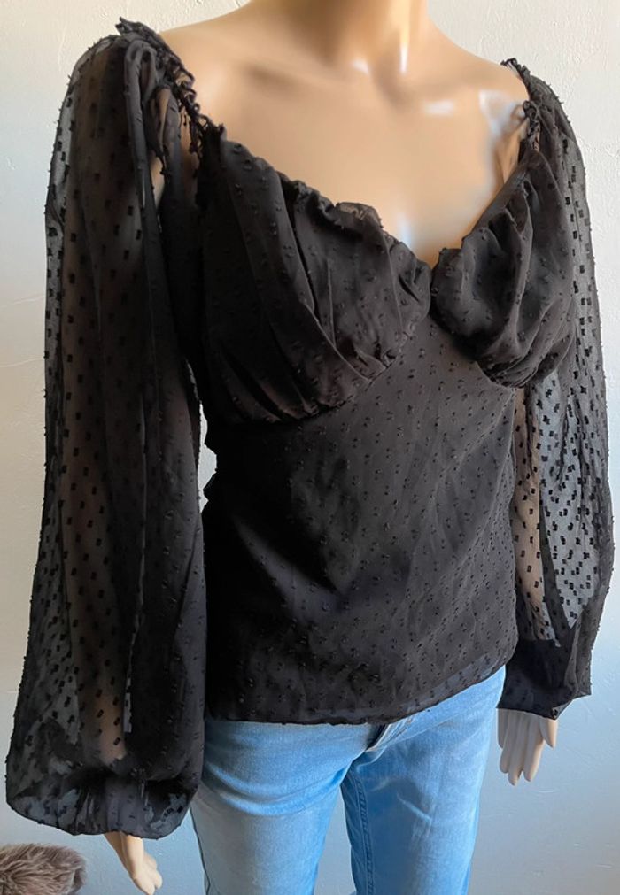 Haut noir Boohoo neuf avec étiquette - Manches bouffantes & pois (Taille XS) - photo numéro 3