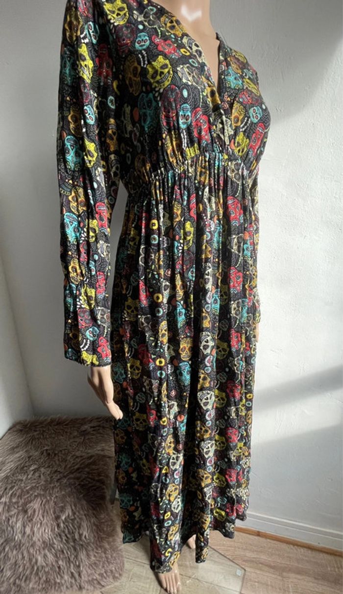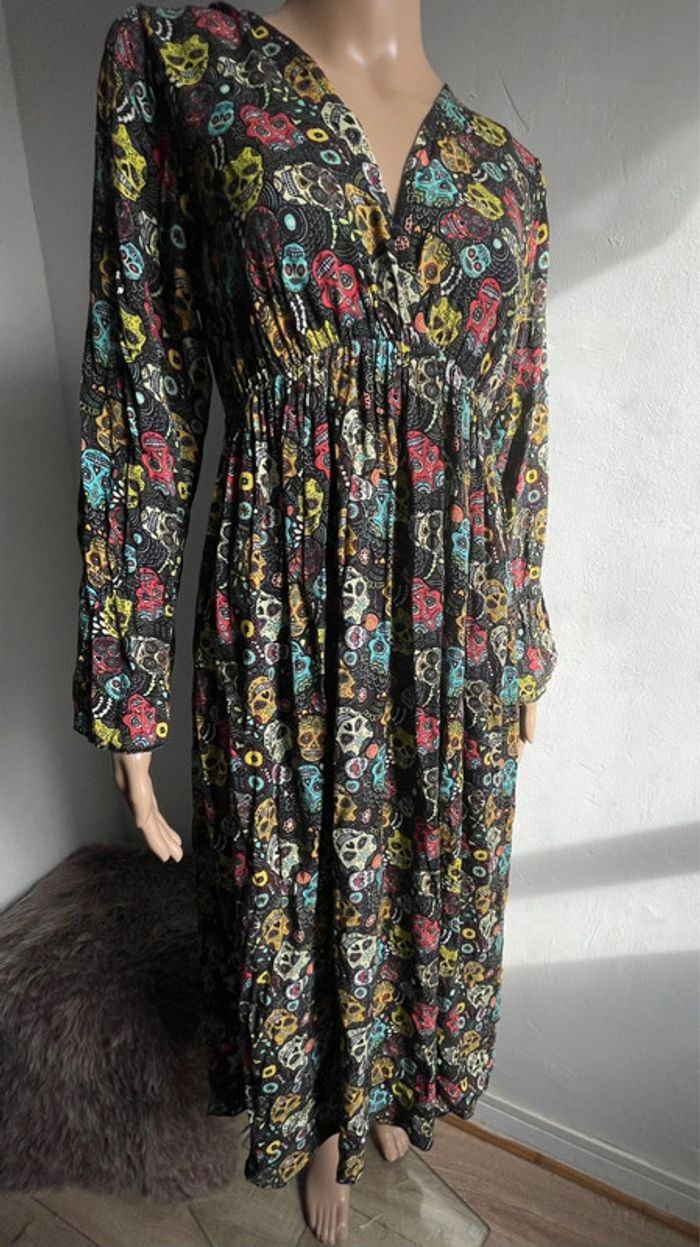 💀🌺 Robe longue noire motif crânes mexicains colorés - Made in Italy - Taille Unique - photo numéro 2