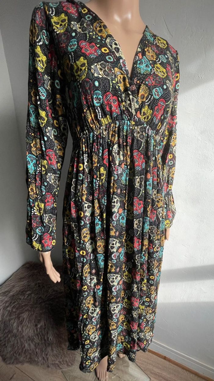 💀🌺 Robe longue noire motif crânes mexicains colorés - Made in Italy - Taille Unique - photo numéro 1