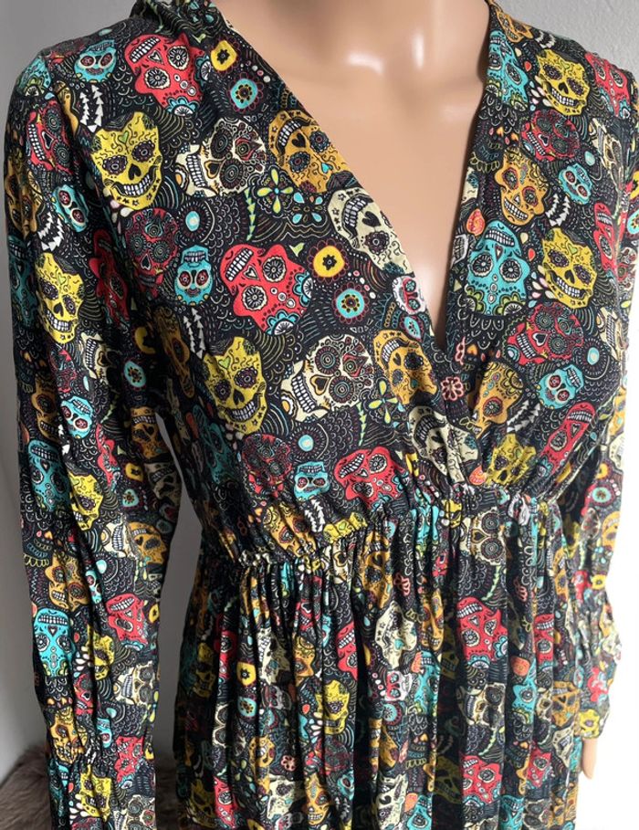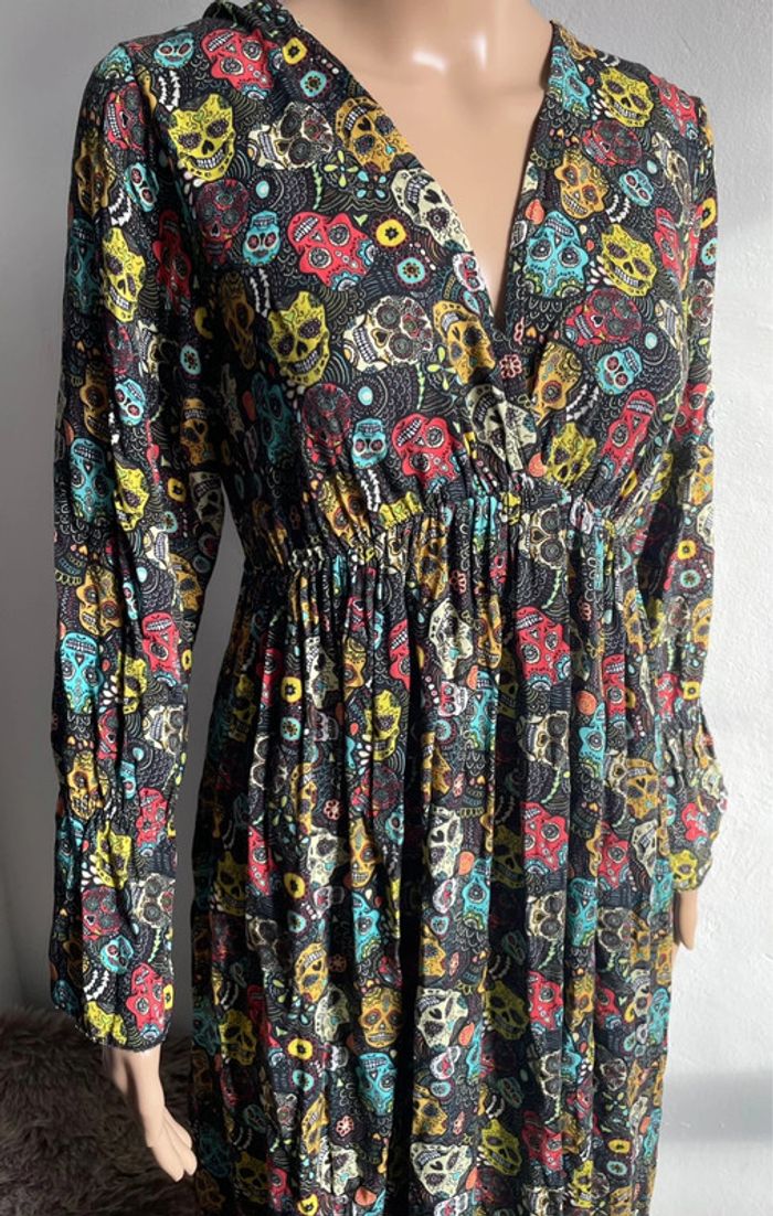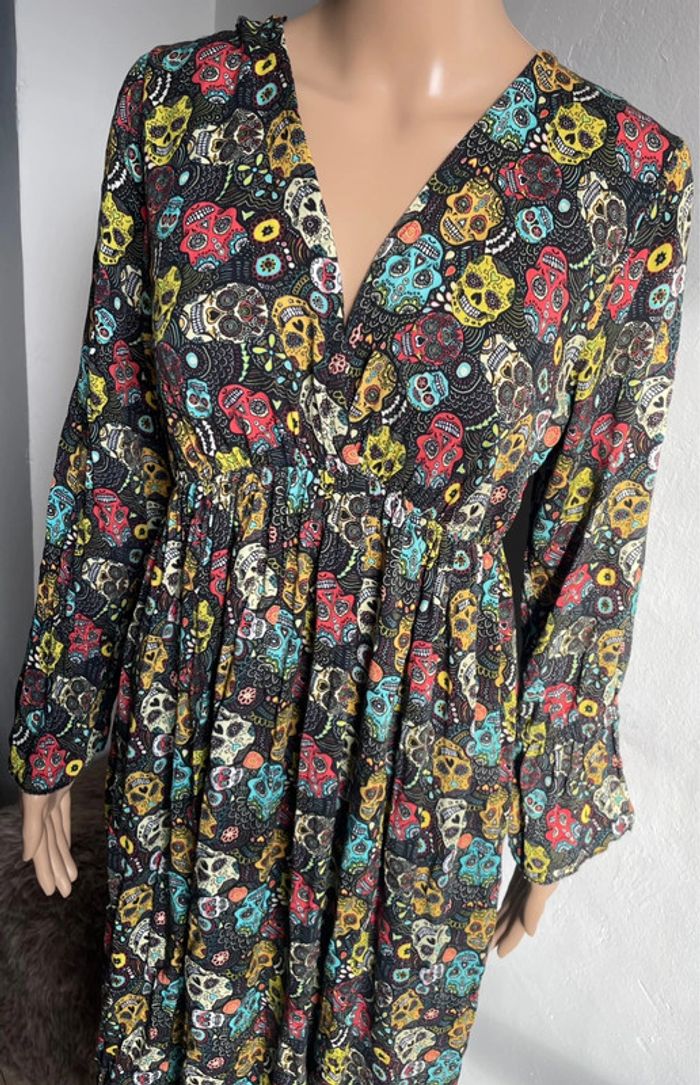 💀🌺 Robe longue noire motif crânes mexicains colorés - Made in Italy - Taille Unique - photo numéro 6