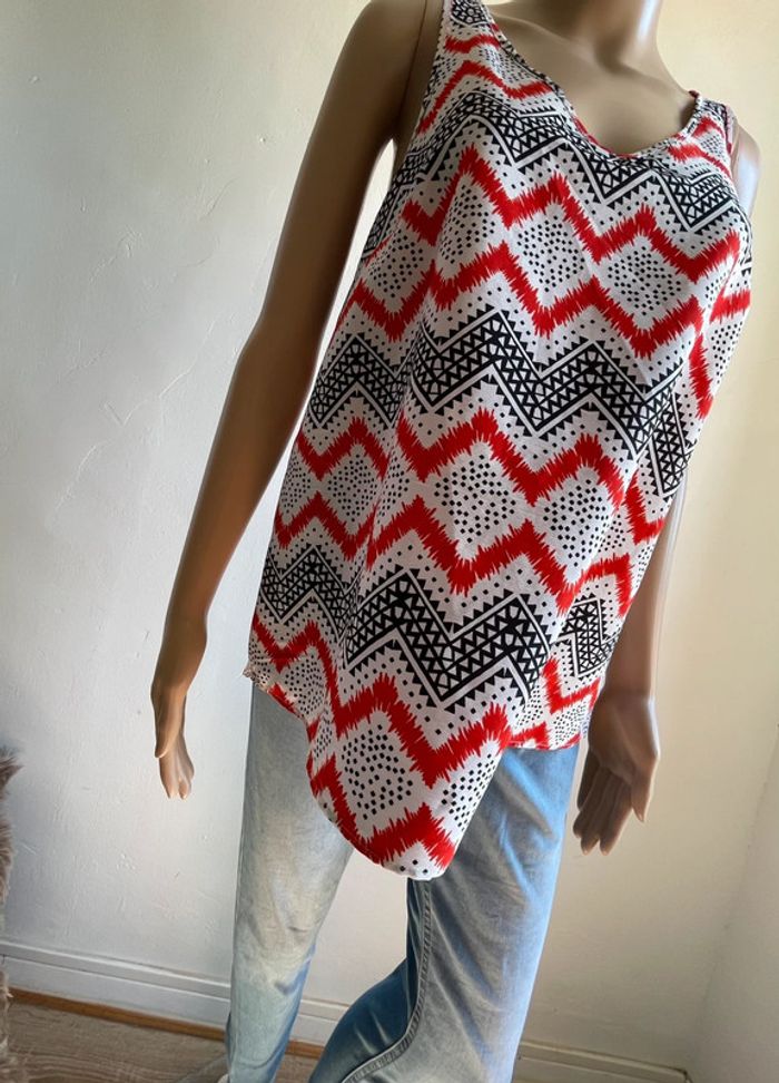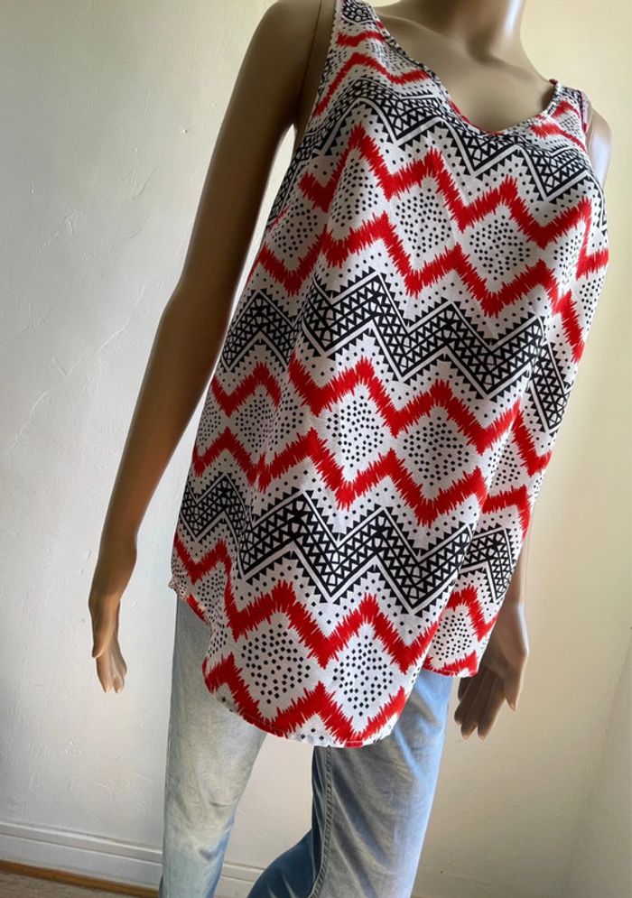 ☀️ Joli top Atmosphere T38. Léger & fluide, motifs géométriques rouge/noir/blanc. Parfait pour l'été ! ✨ Très bon état. Marque : Atmosphere Taille : M (ou 38) État : Très bon état Couleur : Rouge, Noir, Blanc Prix : 6€ Mots-clés : #top #été #zigzag #atmosphere #débardeur #fluide #tendance