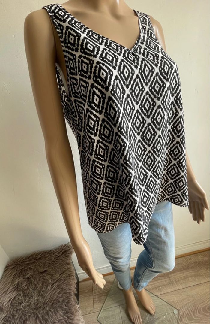 Haut sans manches motif ethnique noir et blanc - Taille 38 - photo numéro 3