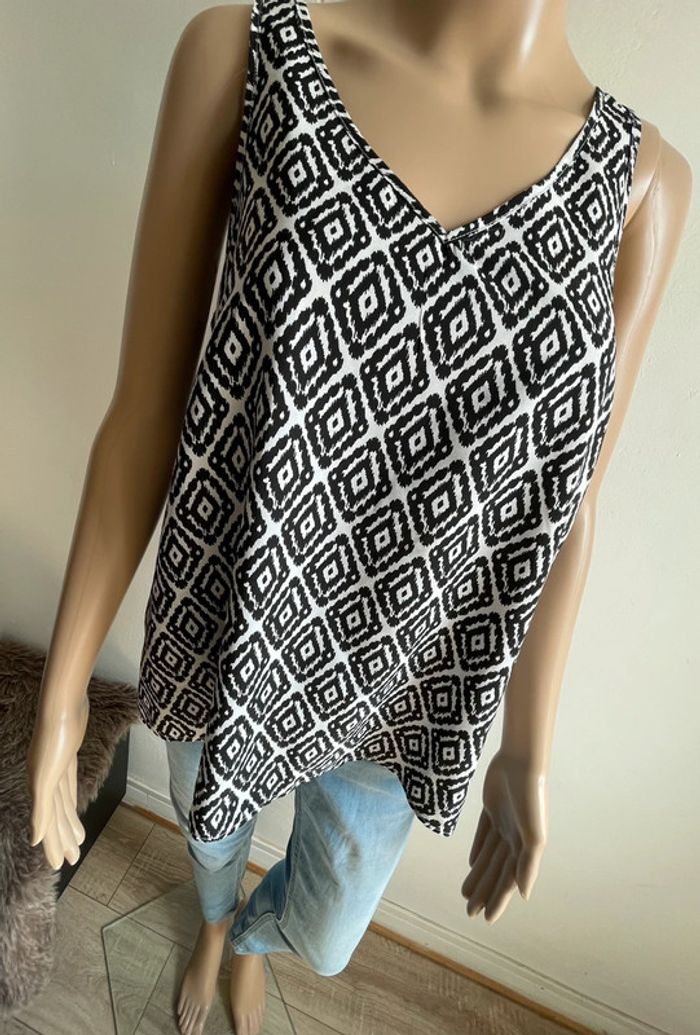 Haut sans manches motif ethnique noir et blanc - Taille 38 - photo numéro 1