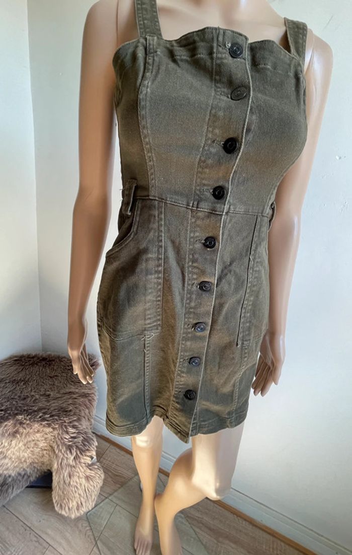 Je vends cette jolie robe H&M de couleur kaki, taille S. Son style débardeur avec des bretelles épaisses et ses boutons noirs sur le devant lui donnent une touche chic et décontractée. À noter : la ceinture d’origine est manquante, mais la robe reste parfaitement portable avec une autre ceinture ou sans. État : Très bon état. Prix : 10