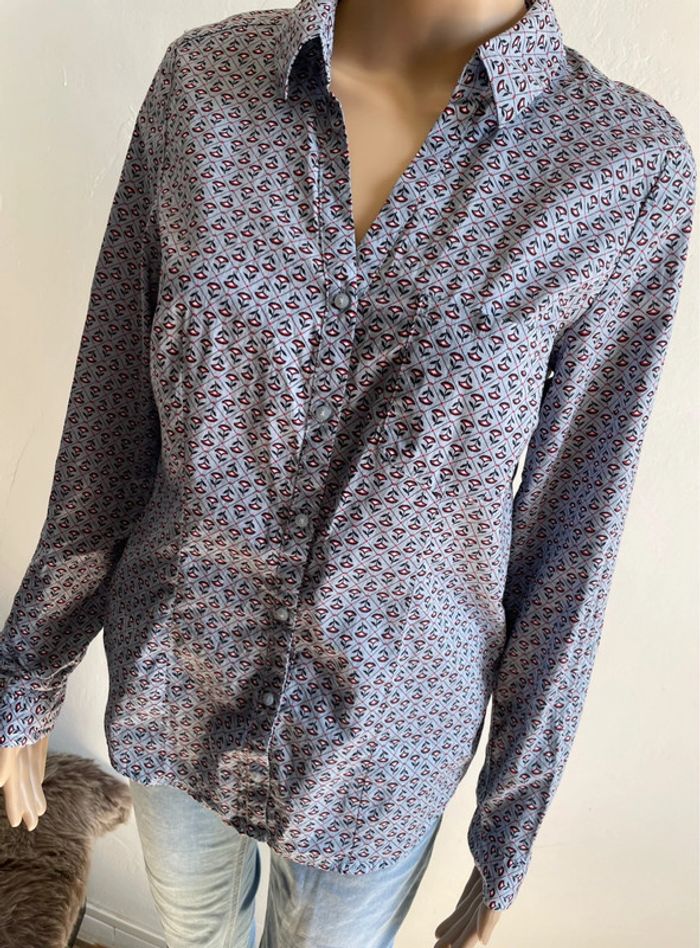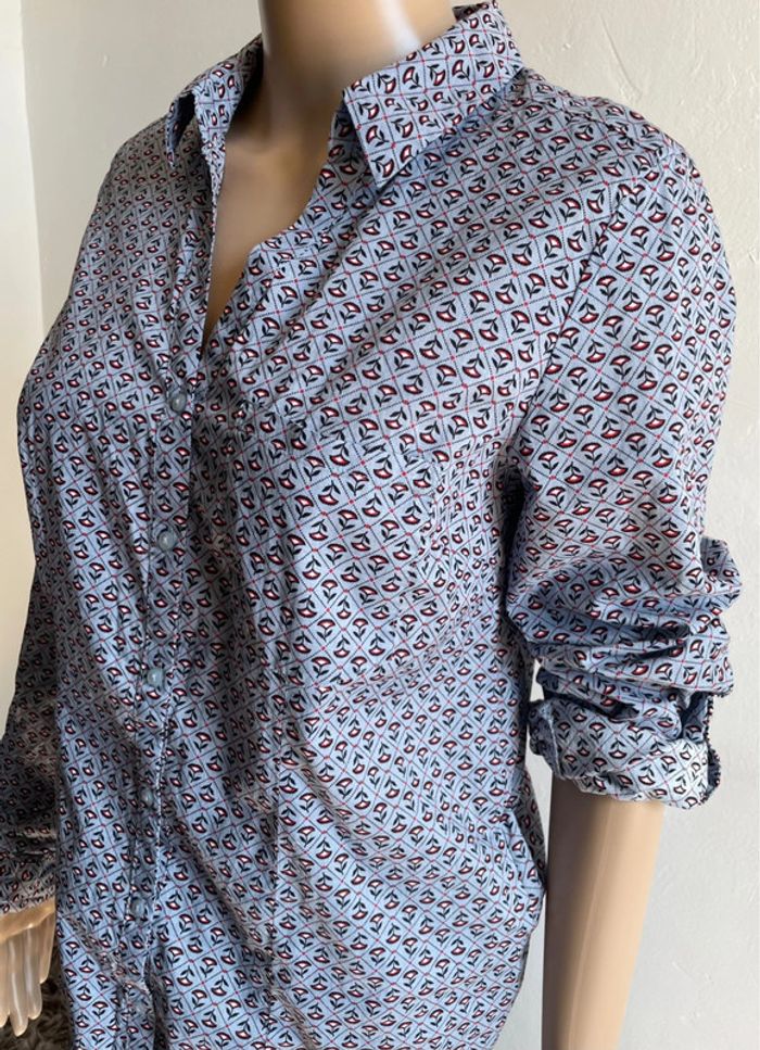 Belle chemise femme Camaïeu 🌸, en parfait état. Motif fleuri esprit bohème 🌼/cottage core 🏡 sur fond bleu clair 💙. Manches longues, coupe cintrée, boutons pression. Idéale pour un look décontracté ou plus habillé ✨. Taille : FR 36 / EU 36 / IT 40 / UK 8 / RUS 42 N'hésitez pas si vous avez des questions ou souhaitez plus de photos ! 📸
