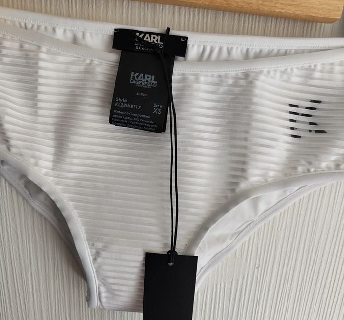 👙 Bas de maillot de bain style shorty. Logo imprimé. 👙 Taille XS 👙 Matière : 88% Polyamide / 12% Élasthanne 👙 Marque : Karl Lagerfeld 👙 Neuf avec étiquette 👙 #famillydress67maillotdebainadulte 👩 #famillydress67femmexs #bas #maillotdebain #blanc #taillexs #shorty #karllagerfeld #neufavecetiquette #femme