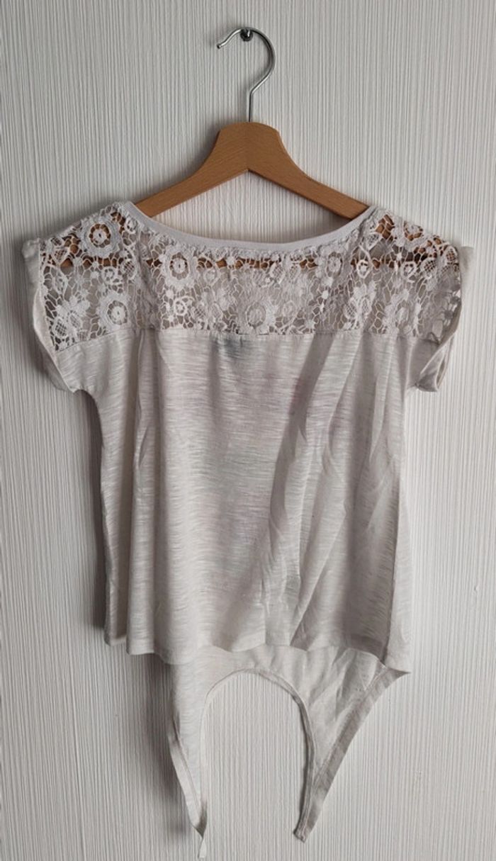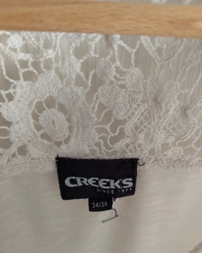 👩 T-shirt léger à nouer. Finitions crochet haut du dos. 👩 Taille 34/36 👩 Marque : Creeks 👩 Bon état général 👩 #famillydress67femmes ☀️ #famillydress67etefemme #tshirt #anouer #crochet #creeks #bonetatgeneral #blanc #taillexs #tailles #femme