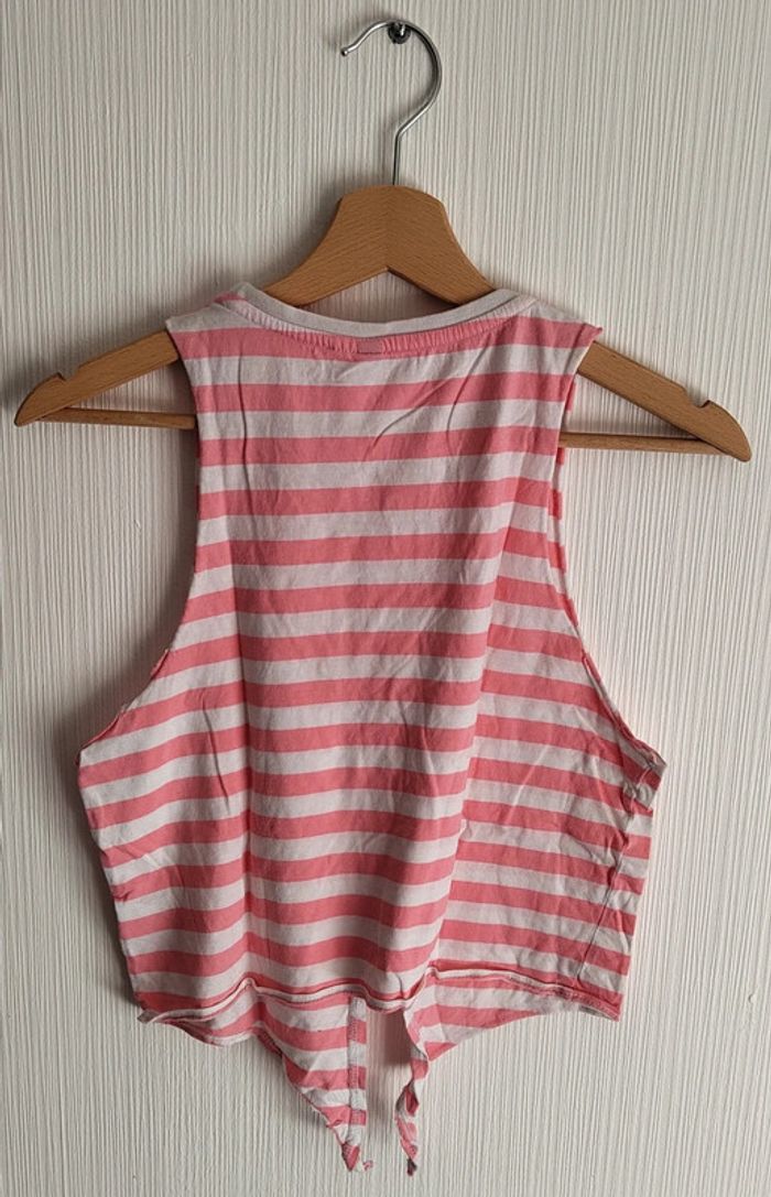 👩 Top/Débardeur court à nouer. Motif rayures. 👩 Taille S 👩 Marque : H&M 👩 Très bon état 👩 #famillydress67femmes ☀️ #famillydress67etefemme #debardeur #top #court #S #HetM #tresbonetat #femme #anouer #rose #blanc