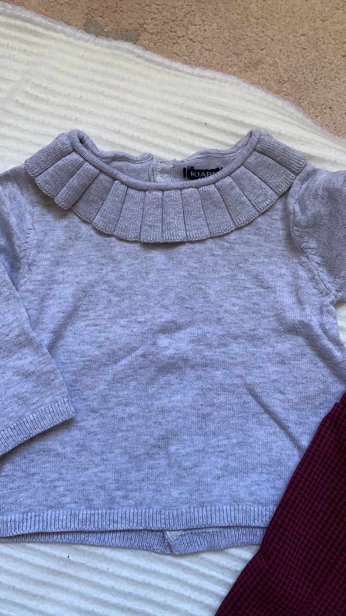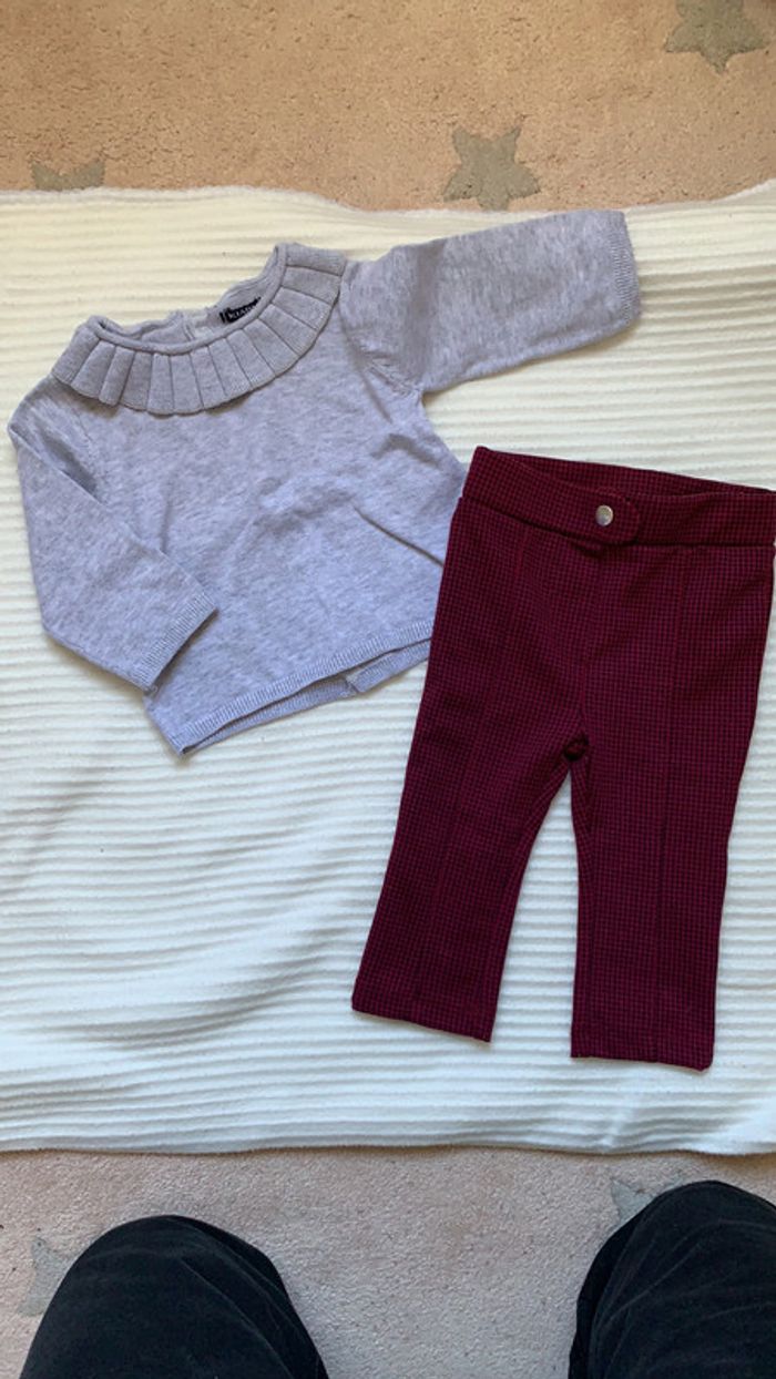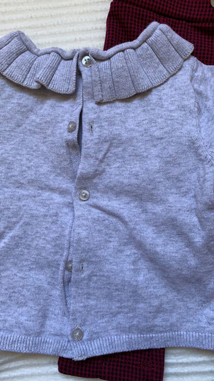 porté mais en très bon état 1 ier main pull fin avec col volant se ferme dans le dos legging Bordeaux taille 6 mois