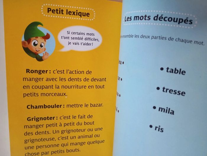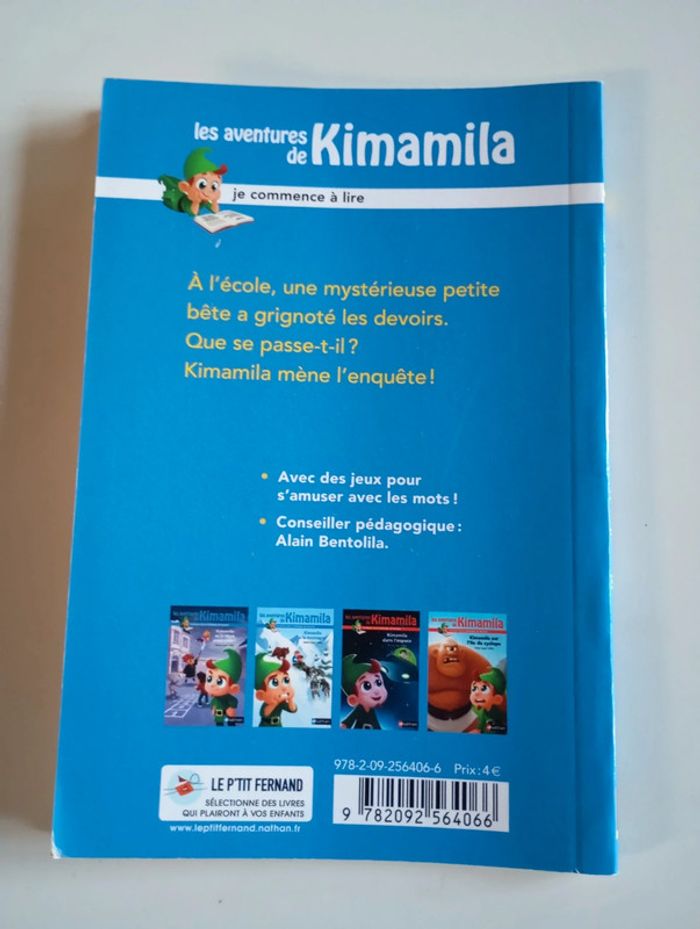 Ce matin, quand Alorie et Manu arrivent en classe, c'est la catastrophe ! Cahiers, rideaux, fils électriques : tout a été grignoté par une drôle de petite bête. Heureusement, Kimamila est là ! Éditeur ‏ : ‎ Nathan 32 pages Âge de lecture ‏ : ‎ 6 - 8 ans Dimensions ‏ : ‎ 12.1 x 0.5 x 18 cm Livre en très bon état Je vends d'autres livres premières lectures #phil_peg_premiereslectures #kimamila #classe #école