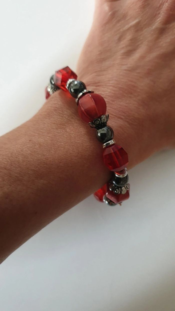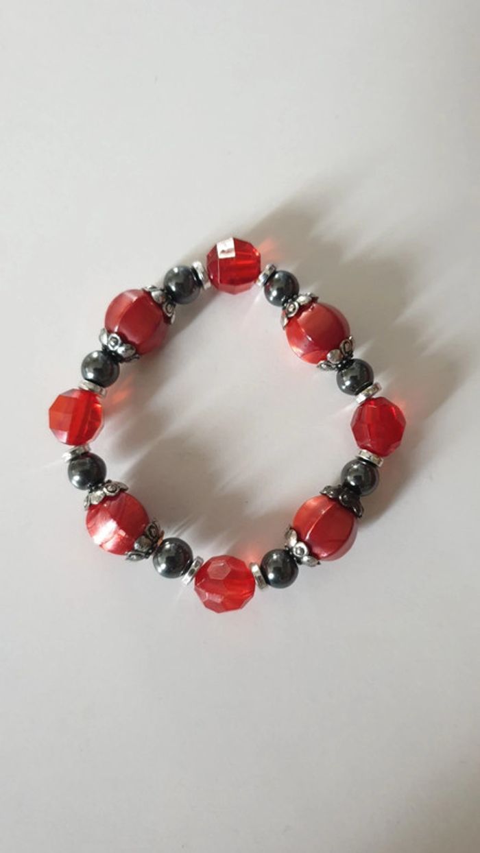 Bijoux fantaisie bracelet élastique en perles rouge gris argent - photo numéro 1