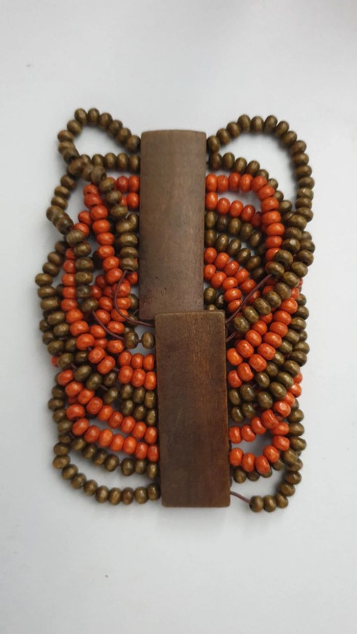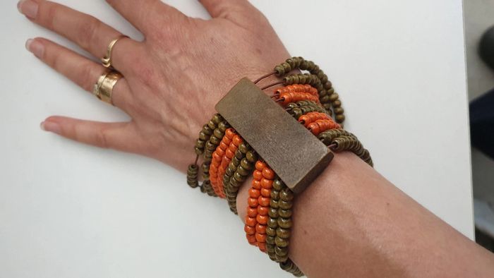 Bijoux fantaisie bracelet perle en bois orange et marron kaki - photo numéro 1
