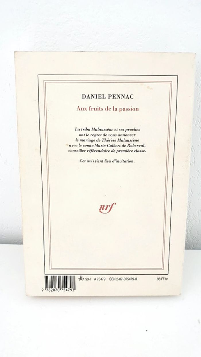 Livre roman "Aux fruits de la passion" Daniel Pennac éditions Gallimard - photo numéro 2