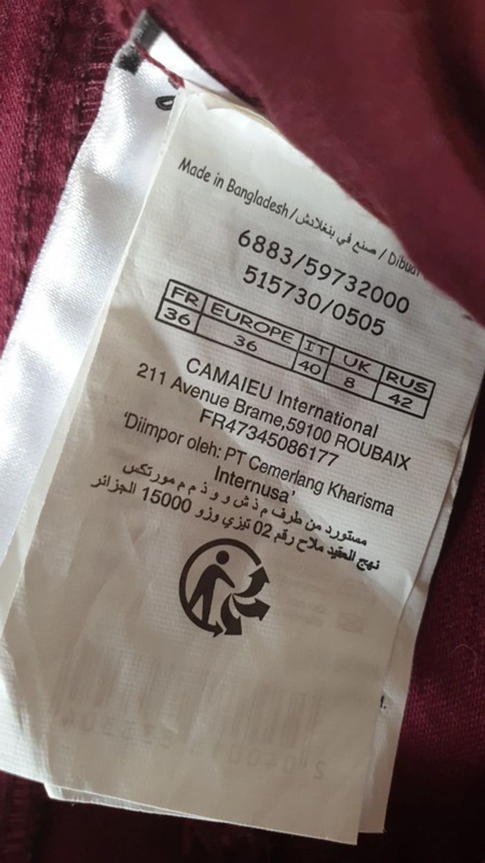 Pantalon jeans slim Camaïeu bordeau framboise femme taille S ou 36 - photo numéro 4