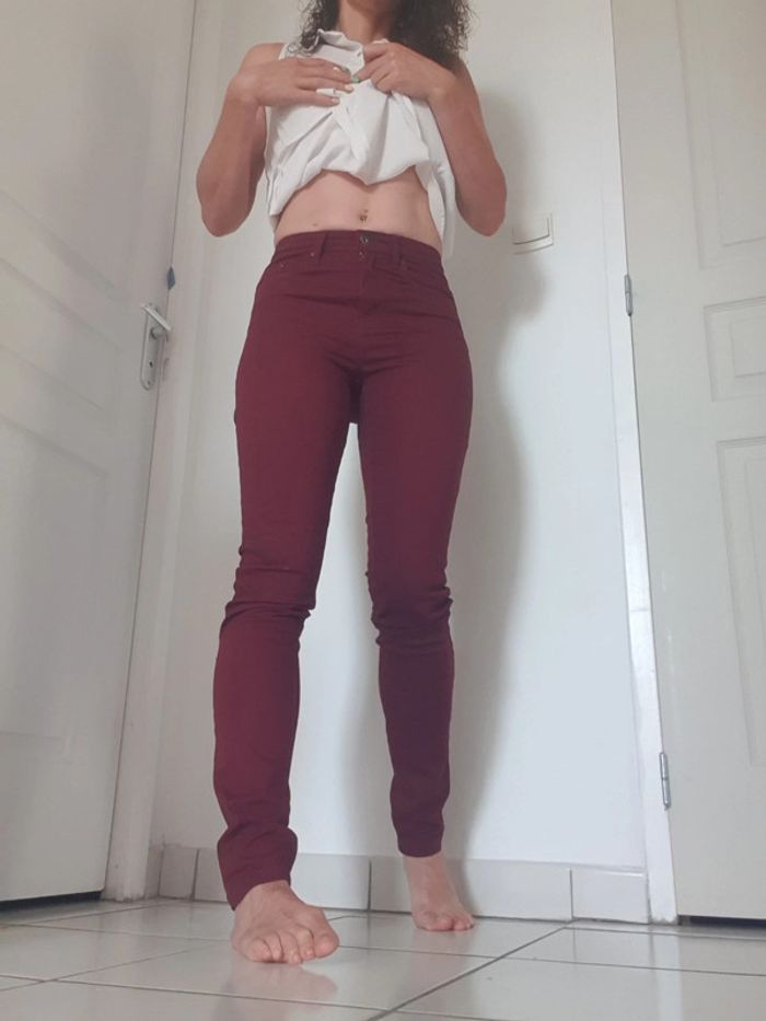 Pantalon jeans slim Camaïeu bordeau framboise femme taille S ou 36 - photo numéro 5