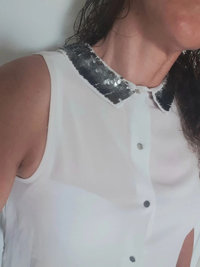 Haut Tee-shirt chemise chemisier sexy transparent Pimkie strass taille S ou 36