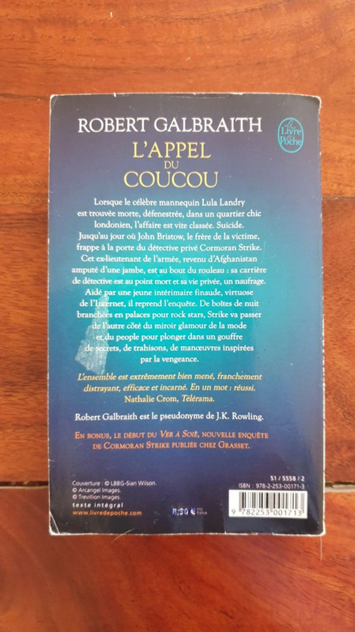 Livre de poche roman fiction policier "l appel du coucou" de Robert Galbraith - photo numéro 2