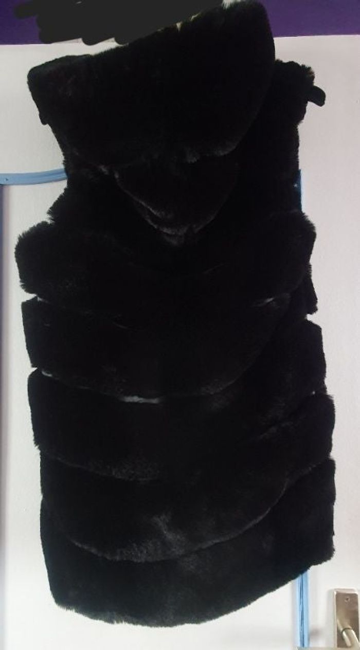 Manteau noir fausse fourrure sans manches