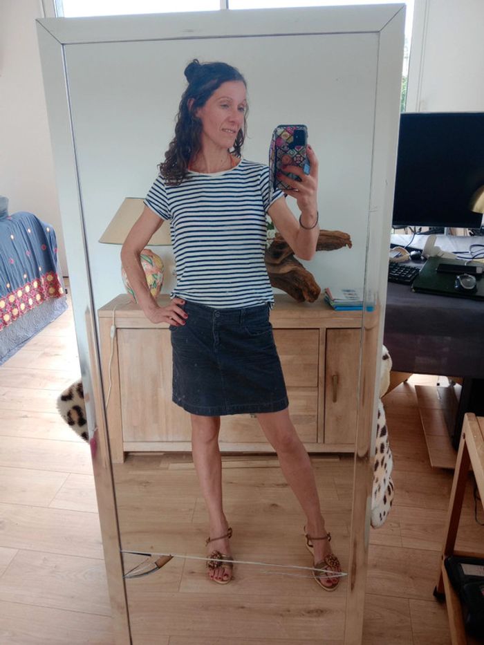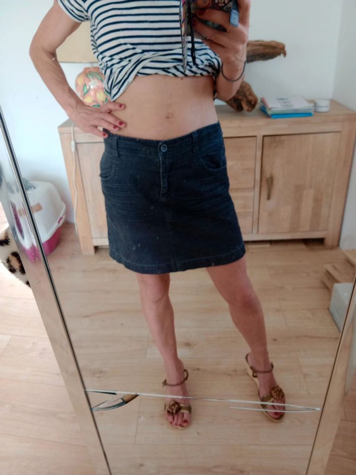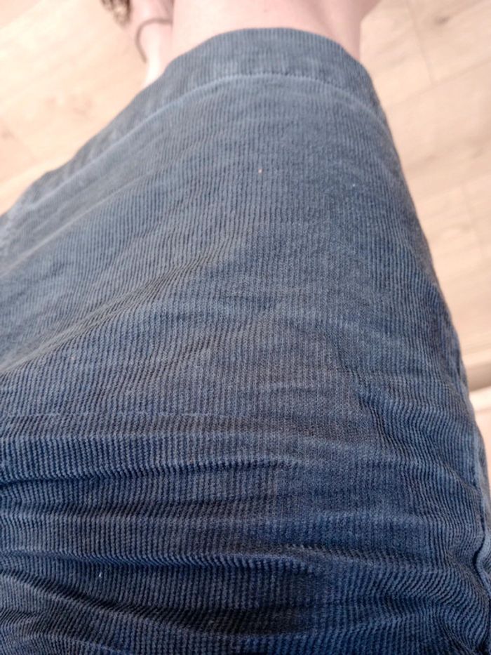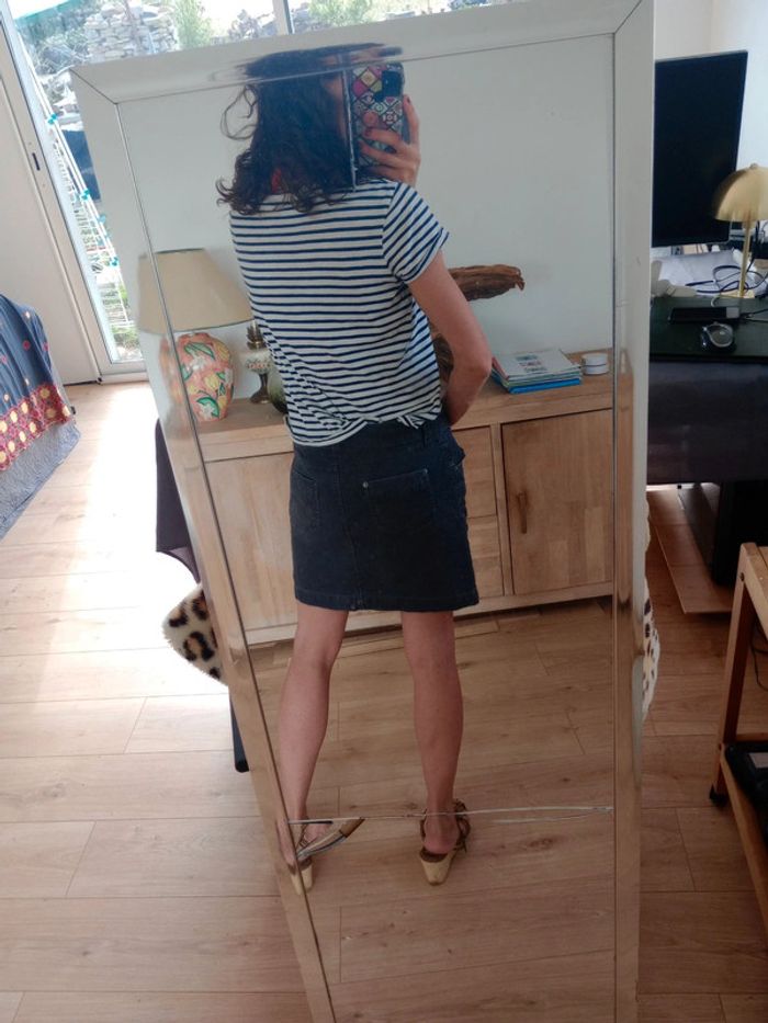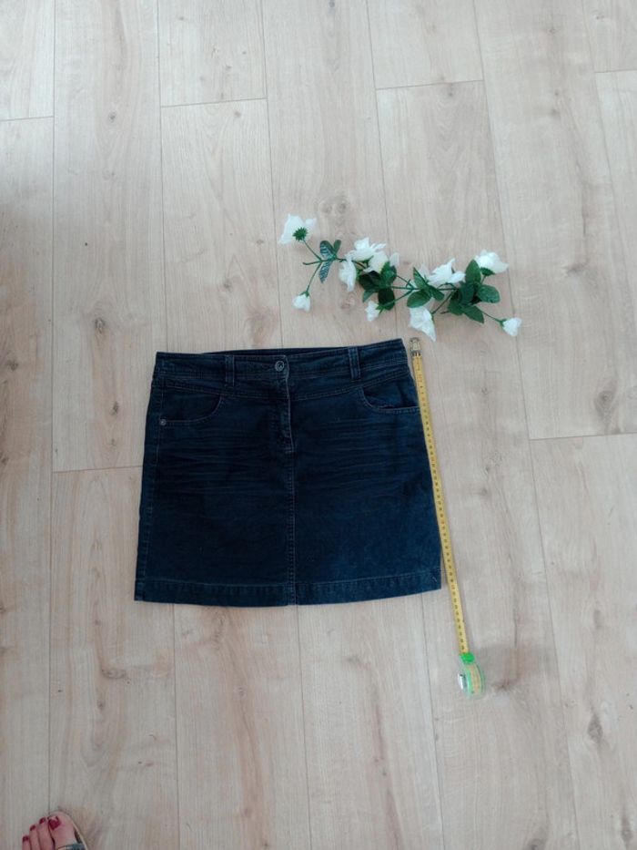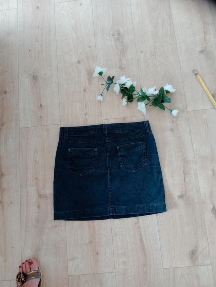 Finement côtelée, jupe avec braguette Présence de deux poches sur les hanches ainsi qu'à l'arrière Largeur au niveau de la taille 40 cm Longueur 40 cm #carineleray_femme_40