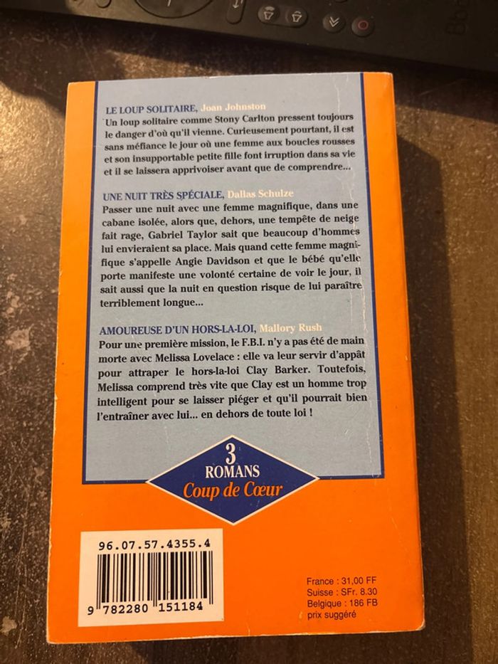 Livre de poche 3 histoire en 1 livre: Le loup solitaire- Joan johnston Une nuit très spéciale- Dallas schulze Amoureuse d'un hors la loi- Mallory rush Année: 1995 #prescillia60_livre Envoie rapide et soigné Réduction activé si achat en lot