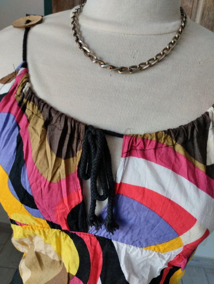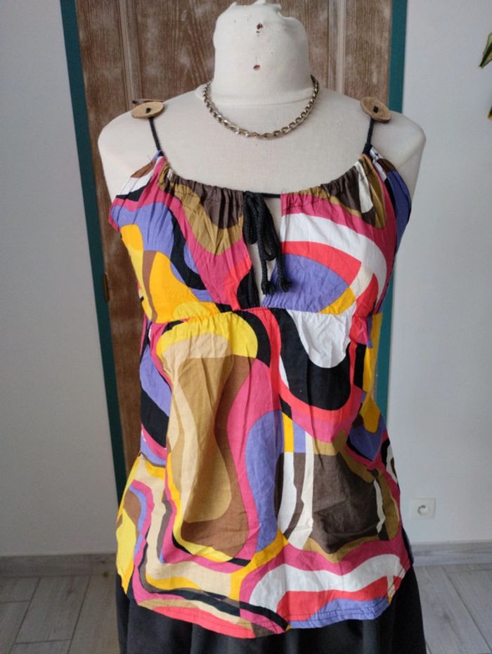 Jolie blouse style hippie chic Avec ses bretelles originales avec des gros boutons en bois. Taille unique mais correspond a du 38 Marque fofolle La jupe et le collier sont disponibles dans une autre annonces #debardeur #blouse #taille38 #vetementsfemme