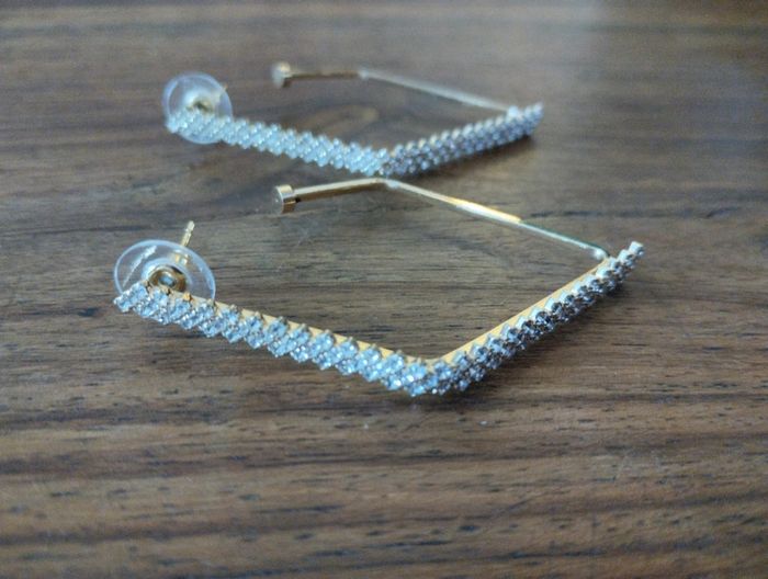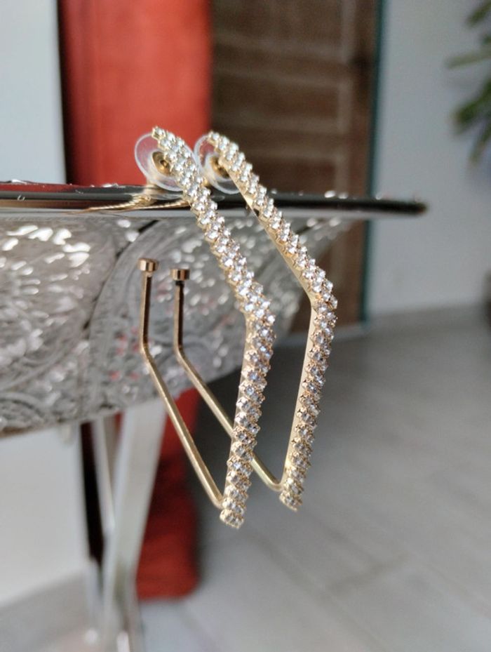 Paire de boucles d'oreilles dorées avec strass Neuves dans leur pochon d'origine Jamais mises. #bijoux #bouclesdoreilles