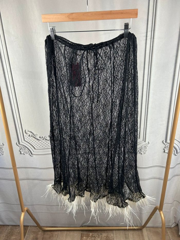 Neuve avec étiquette 🏷️ Très jolie jupe en dentelle noire et plume blanches. Vendue 370€ chez Printemps Taille : 1 / S ( ajustable car cordon à la taille ) Longueur : 80cm