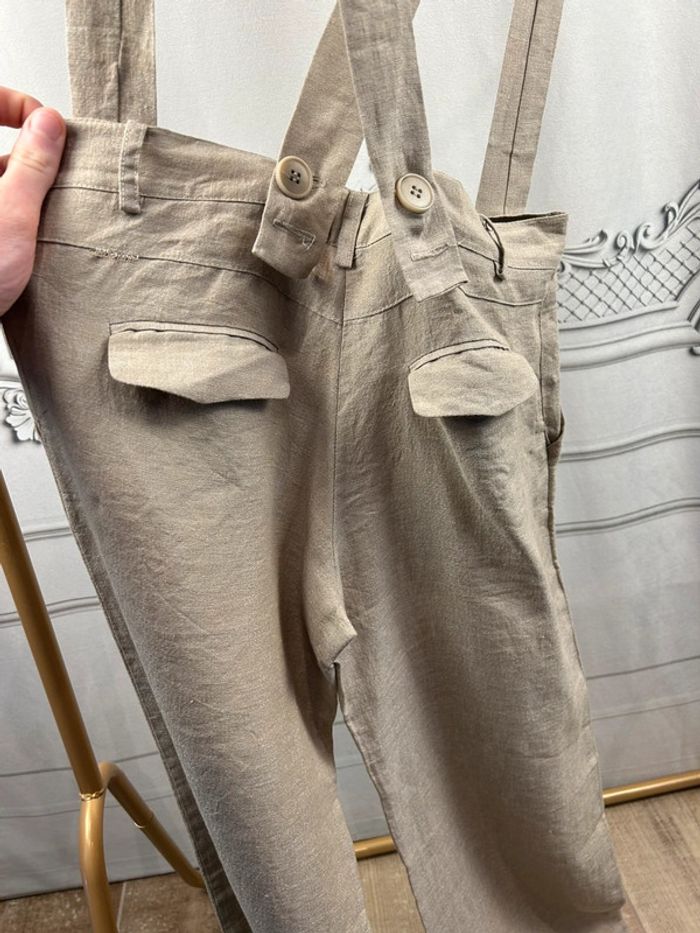Pantalon à bretelles en Lin beige Maje 36 - photo numéro 2