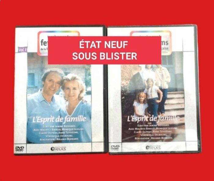 Série télévisée "L'esprit de Famille" (1978) Lot de 2 DVD NEUFS sous blister composant l'intégrale de la série télévisée "L'Esprit de famille" (1978) Collection Les plus grands feuilletons de la télévision française - Editions Atlas État NEUF sous blister Réalisateur : Roland-Bernard Acteurs : Maurice Biraud, Monique Lejeune, Claire Dupray, Anne Teyssèdre La vie est belle mais agitée pour le docteur Moreau avec sa femme et leurs quatre filles , Claire l'aînée surnommée "Princesse", Bernadette "la cavalière", la belle romantique Pauline se rêvant en écrivain, et Cécile la petite dernière de 12 ans mais véritable poison. Et, parfois la grand-mère s'en mêle ! Leur grande maison des environs de Paris, au beau jardin baptisé "La Marette", est le théâtre des aventures familiales : la sauvegarde du cheval de Bernadette promis à l'abattoir, les premières amours de Pauline, la fugue de Claire, ... Bonus : Entretien avec la romancière Janine Boissard Durée : 6 h 15 TOUS PUBLICS