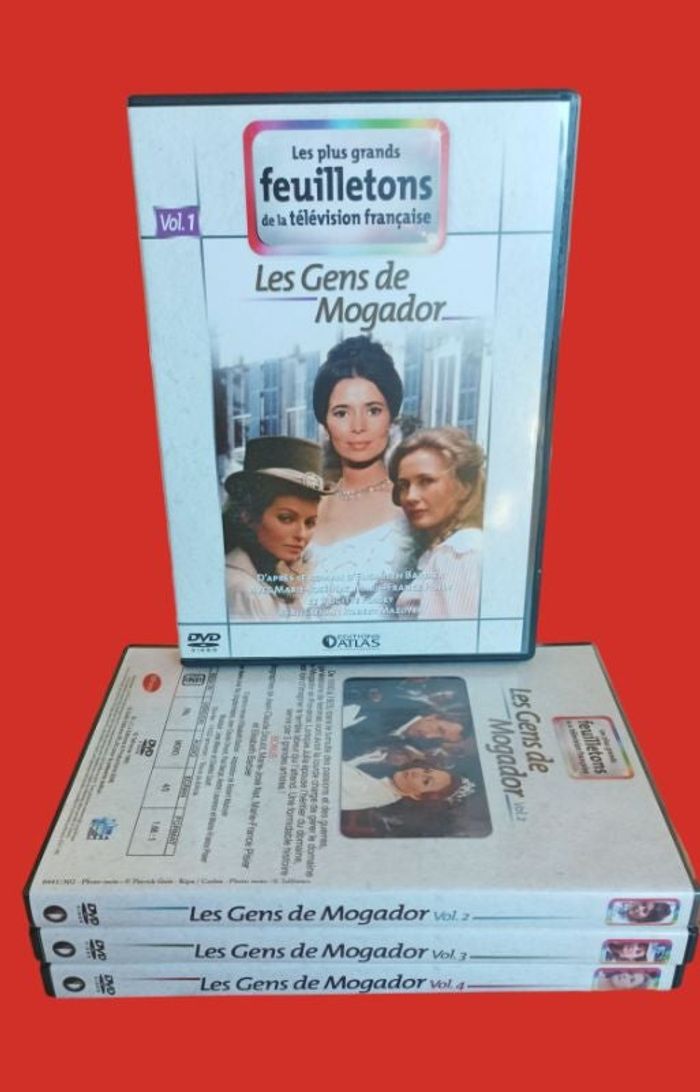 Lot de 4 DVD formant l'intégrale de la série télévisée "Les Gens Mogador" Très bon état comme neuf (aucune micro-rayure) Collection Les plus grands feuilletons télévisés de la télévision française - Éditions Atlas Avec Marie-José Nat - Brigitte Fossey - Jean-Claude Drouot - Paul Barge - André Laurence - Marie-France Pisier Retrouvez avec plaisir et nostalgie cette superbe série télévisée de 1995 "Les Gens de Mogador" qui raconte l'histoire du Domaine de Mogador. De 1850 à 1925, dans le tumulte des passions et des guerres, trois générations de femmes n'ont avoir la lourde tâche de gérer le Domaine de Mogador en Provence. Lorsque Julia épouse l'héritier du domaine, elle est loin d'imaginer le terrible labeur qui l'attend. Une formidable histoire servie par 3 grandes artistes ! 4 DVD : 13 épisodes de 55 minutes