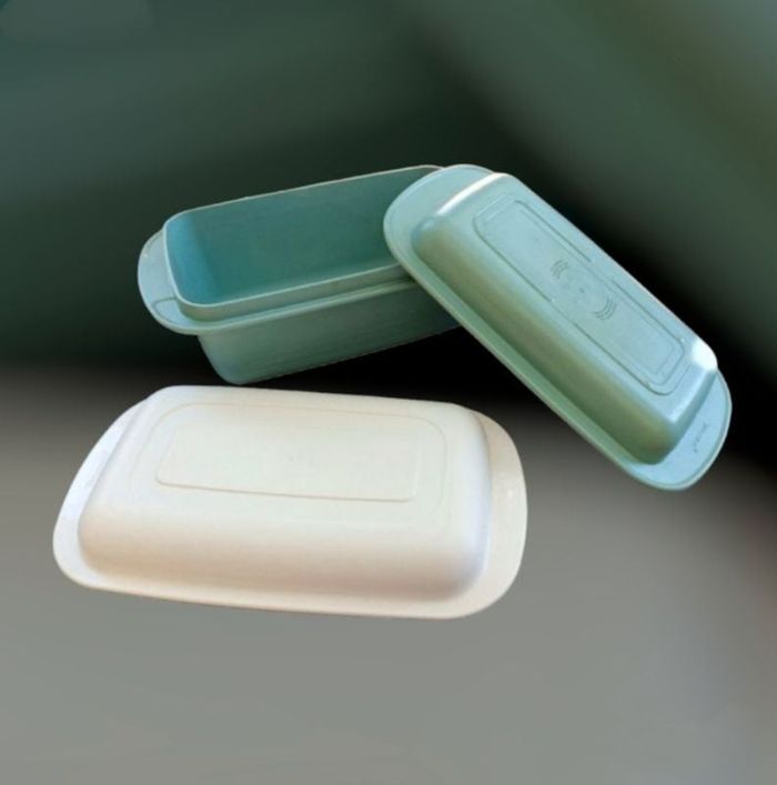 Terrine Micro Plus / Micro Pro Tupperware Fabriquée en France... 🇲🇫 Terrine 1,9 litres avec ses deux couvercles : ✓ un couvercle de cuisson ✓ un couvercle blanc de conservation Dimensions : 27,7 cm X 14,5 cm - 12,5 cm de hauteur Couleur vert d'eau pour la terrine et son couvercle (four, micro-ondes, frigo et congélateur). Le couvercle de conservation souple et blanc est destiné à être utilisé dans le frigo ou dans le congélateur uniquement. Le matériau est conçu pour des températures allant jusqu'à + 230°C au four traditionnel et - 25°C au congélateur.