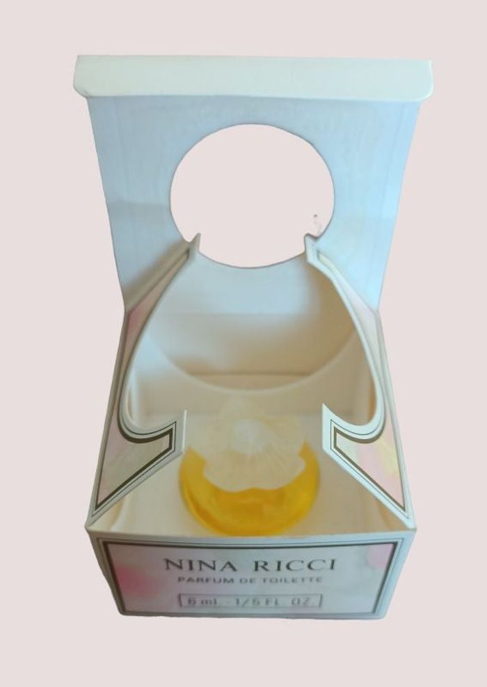 Miniature de parfum de collection Fleur de Fleurs Nina Ricci Parfum de toilette 6 ml Le bouchon du flacon est en forme de fleur. Le flacon est issu d'une collection et n'a jamais été ouvert. Un support rigide maintient le flacon dans sa boîte. La boîte cartonnée est d'origine avec d'infimes marques du temps passé.