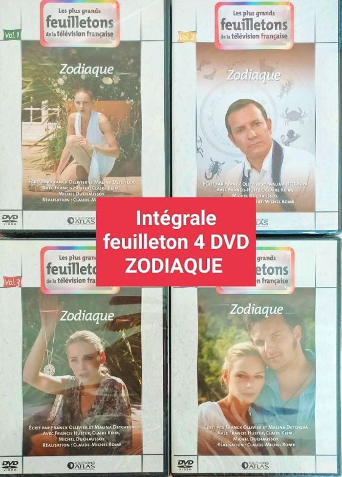 ZODIAQUE Lot de 4 DVD formant l'intégrale de la série télévisée "Zodiaque" 5 épisodes d'environ 100 minutes Collection Les plus grands feuilletons de la télévision française - Editions Atlas Un feuilleton de Franck Ollivier et Malina Detcheva. Réalisé par Claude-Michel Rome. Acteurs : Claire Keim - Francis Huster - Jean-Claude Bouvier - Michel Duchaussoy - Anne Jacquemin - Francis Renaud - Patrick Bosso - Yannis Baraban - Tom Novembre TOUT PUBLIC