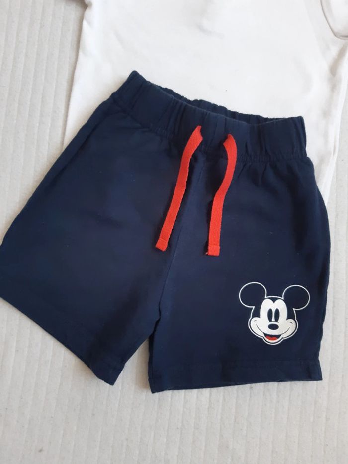 Tenue tee-shirt blanc et short Mickey 9/12 mois - photo numéro 1