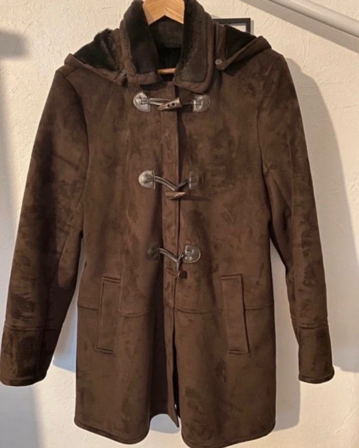 Manteau gémo 42 en très bon état ,très peu porté Aspect extérieur daim, intérieur imitation fourrure très chaud Fermeture éclair et boutons Brandebourg 2 poches #femmesabkm05