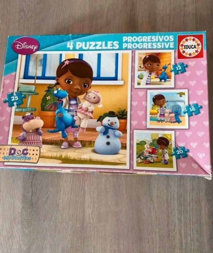 4 puzzles évolutifs disney docteur la peluche en bon état un peu abimés puzzles 12,16,20 et 25 pièces Jeu complet #jeusabkm05