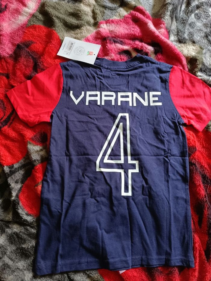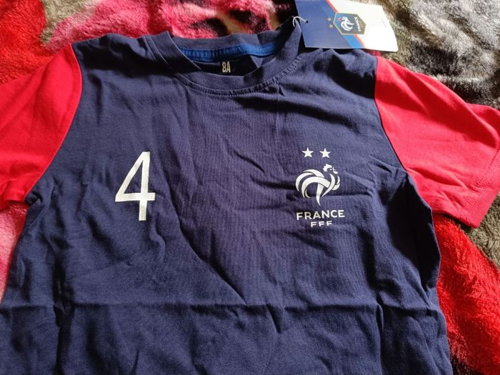 Tee shirt foot fffrance taille 8 ans bleu marine et rouge avec varane avec chiffre 4