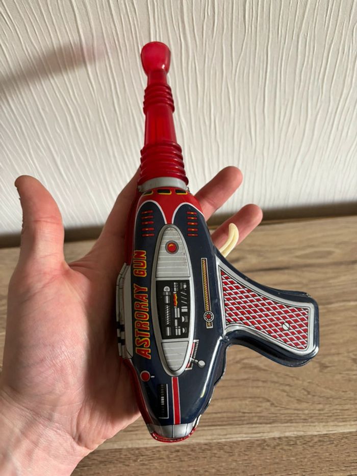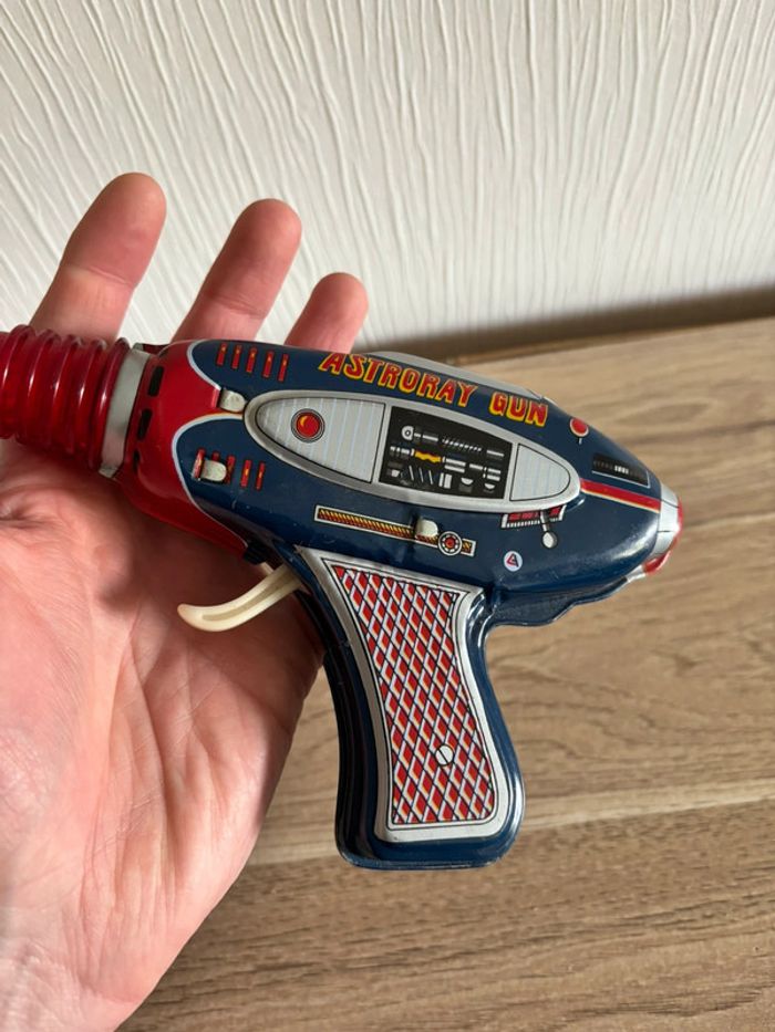 metal toy ancien vintage jouet en tôle de astroray gun , pistolet à étincelles et bruit , mtu korea