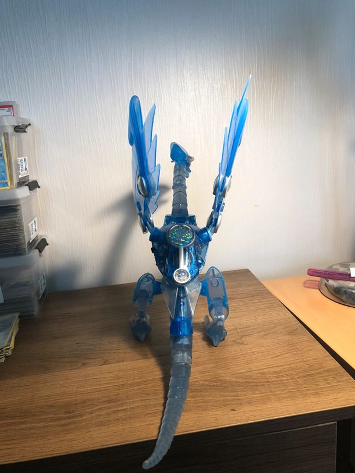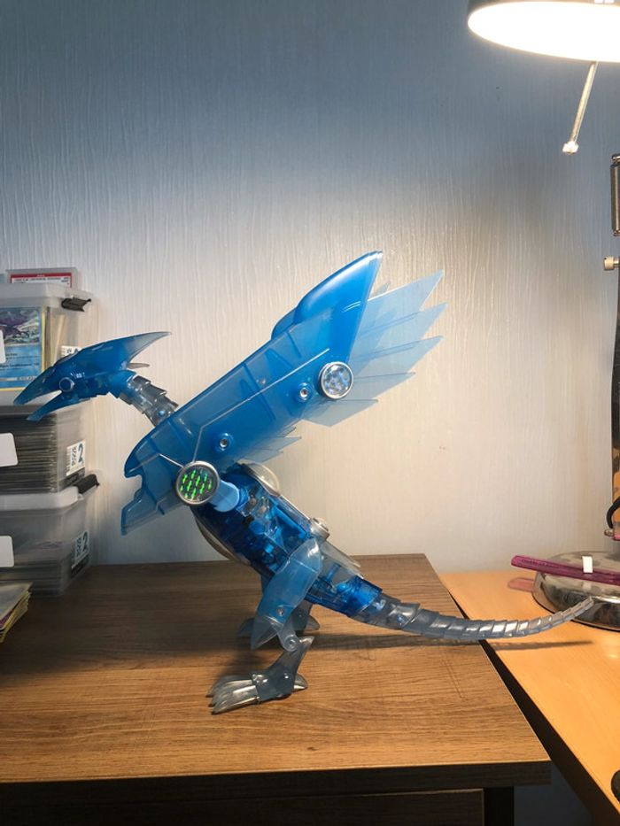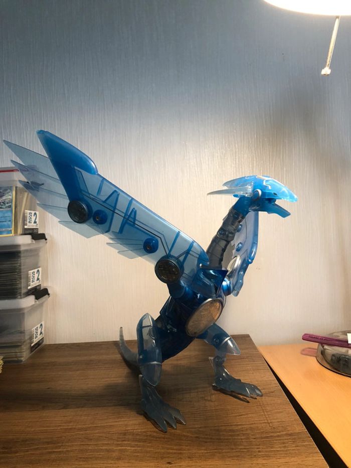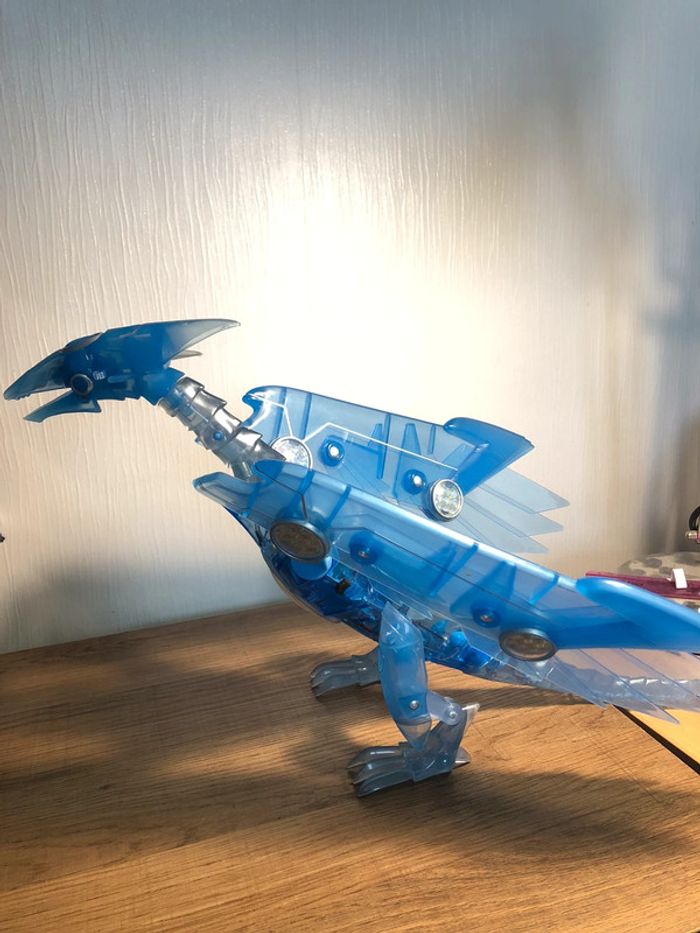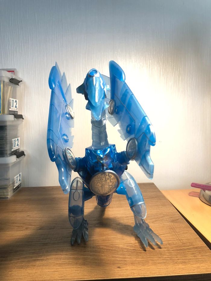 L’électronique fonctionne État occasion , manque une partie en plastique sur son côté gauche de la tête Articulation et mécanisme ok Mesure approximative 32cm de haut 38cm d’envergure #MOZOCHIYUGIOH