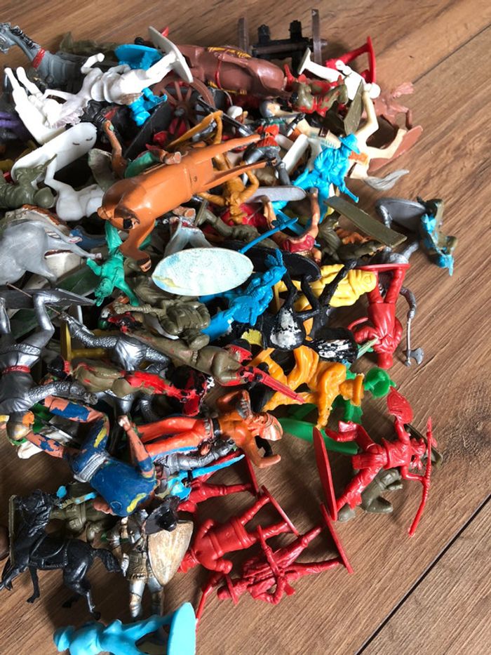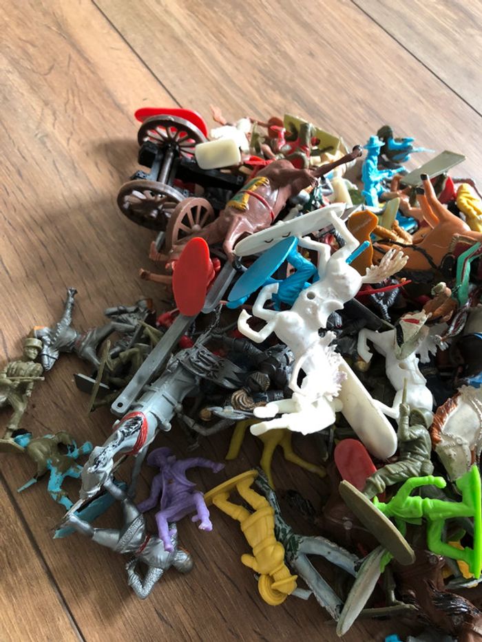 Lot de 800gr de figurines anciennes vintage plastiques cow boy indien chevalier