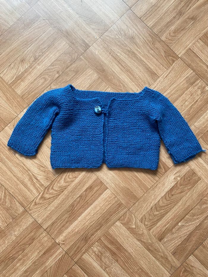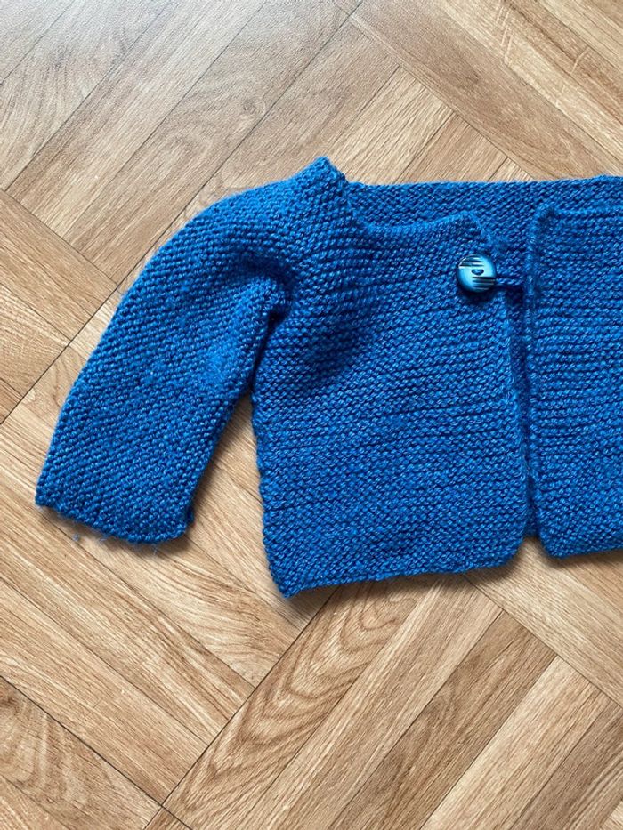 Gilet en laine bleu tricoter à la main - photo numéro 1