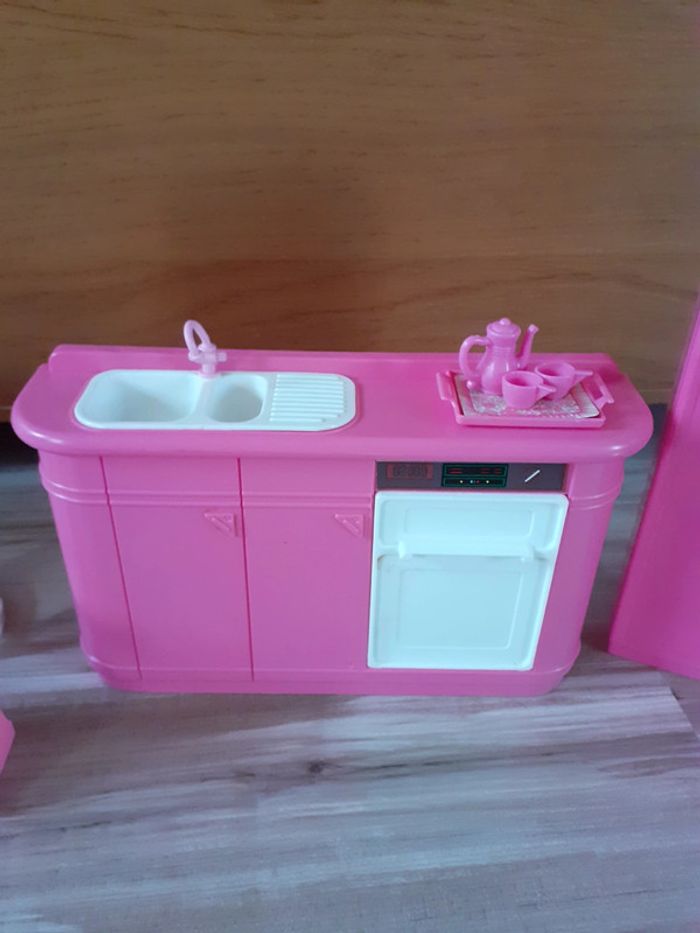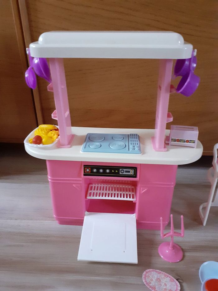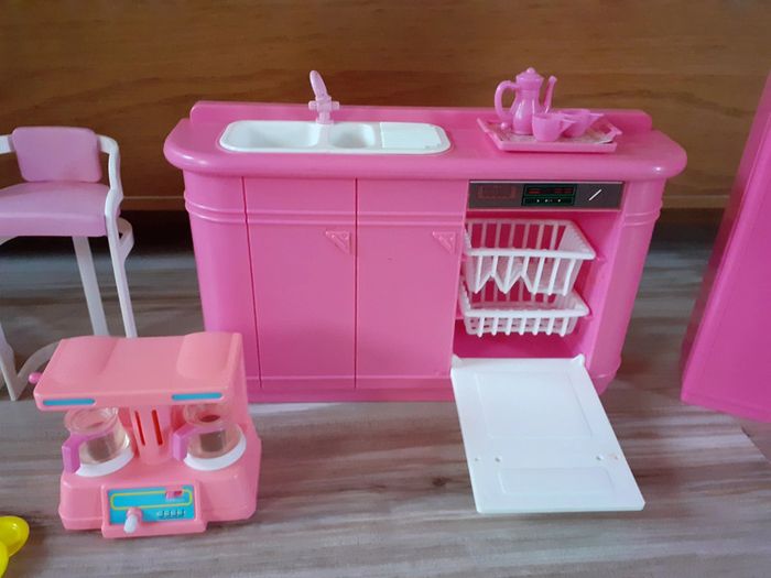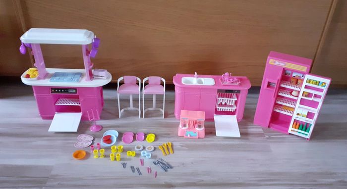 Ensemble cuisine barbie avec tous ces accessoires + chaises #Barbiespoupettes14